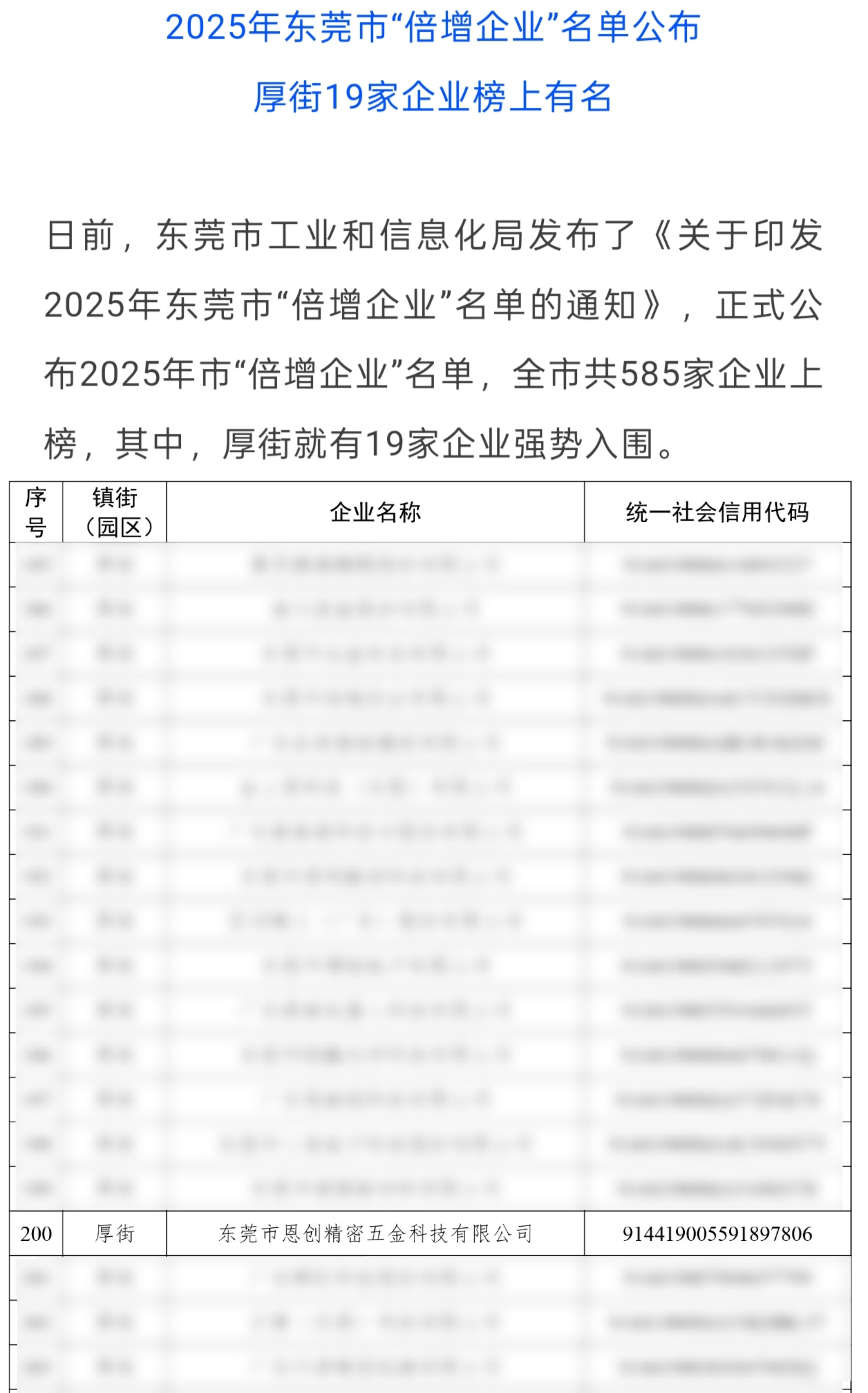 今日,我们怀着无比激动的心情,向全体同仁、合作伙伴及社会各界朋友宣布一个重磅喜讯:恩创科技凭借在精密压铸领域的卓越实力与突出贡献,成功入选 “东莞市倍增企业” 名单!这份荣誉,是市政府对我们过去努力的高度认可,更是对恩创科技未来发展潜力的深切期许。